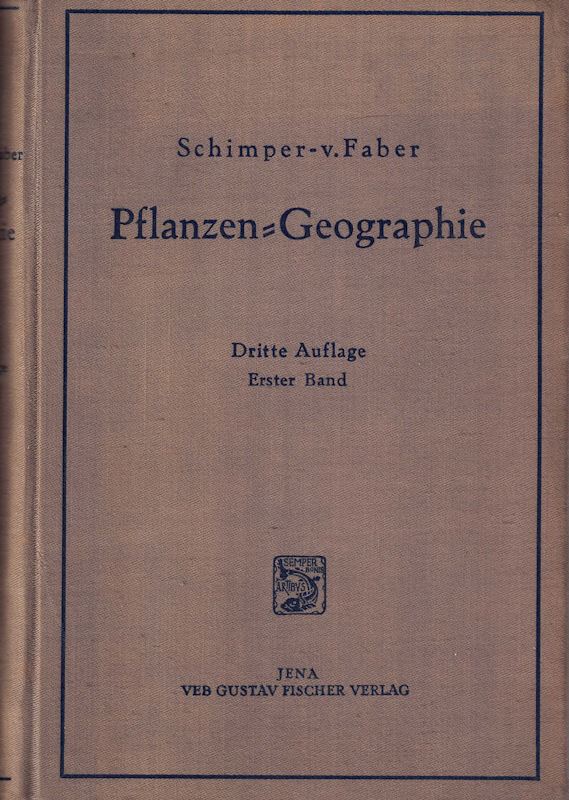 SCHIMPER, A.F.W.: Pflanzengeographie auf physiologischer Grundlage. 2 Bände. 1935. 3te neu bearb. u. wesentl. erw. Aufl. 614 Abb.i. Text u. auf Tafeln. 3 Ktn. XXXVI, 1612 S. gr8vo. Leinen. 50.00 (8666)