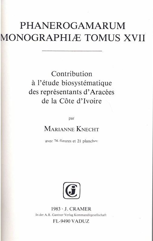 Knecht, Marianne: Contribution à l'étude biosystématique des représentants d'Aracée de la Côte d'Ivoire. 1983,