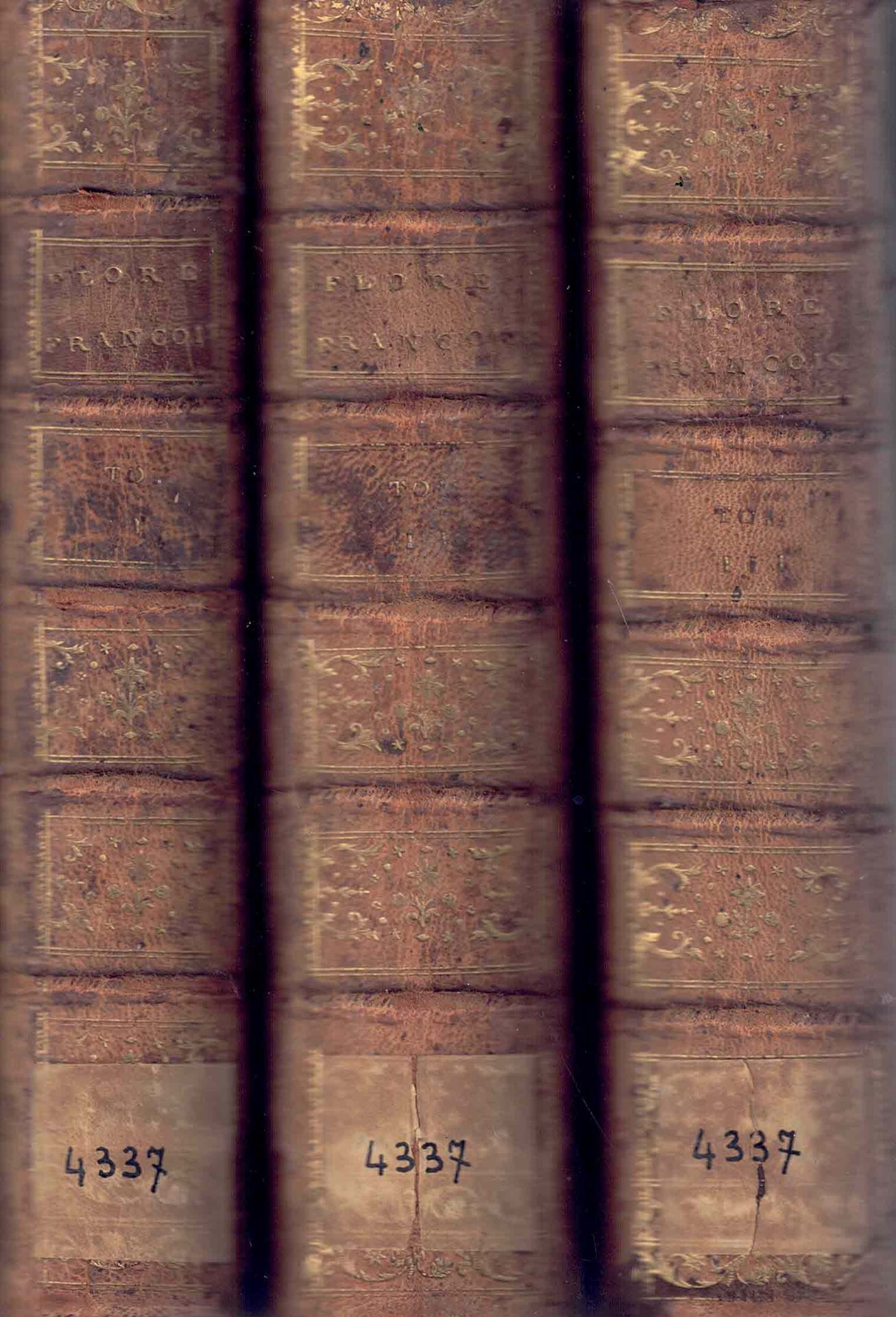 Halfleather binding with rich gold tooling on spine. Labels on spine (Red labels showing author name and volume number, black labels showing title). Black labels partly loosened. Title pages slightly foxed. Else clean and very good condition.