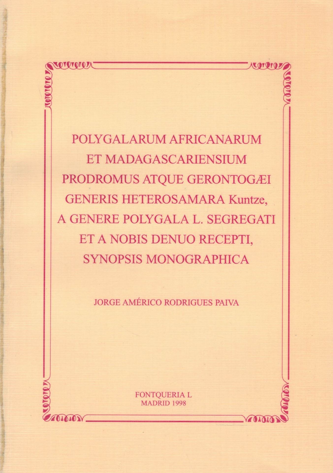 Paiva, Jorge Americo Rodrigues: Polygalarum Africanarum et Madagascar-iensium Prodromus Atque Gerontogaei Generis Heterosamara Kuntze, AGenere Polygala L. Segregati et a Nobis Denuo Recepti, SynopsisMonographica. 1998. (Fontqueria, 50). 52 pls. VI, 346 p. gr8vo. Paper bd(77565) 64.20