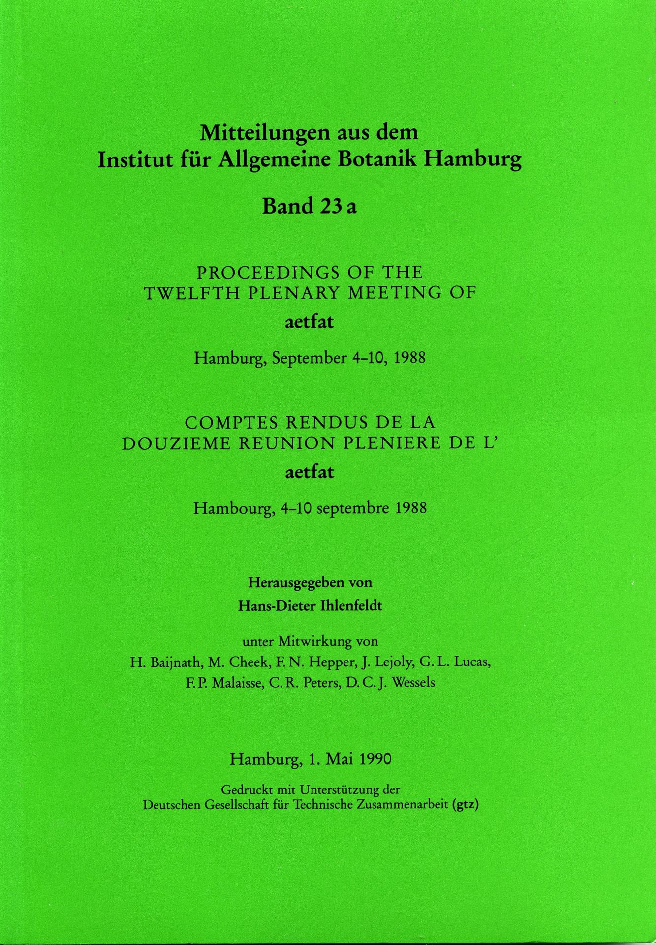Proceedings of the 12th Plenary Meeting of AETFAT, Hamburg, September 4-10,1988. Publ.1990.(Mitteilungen aus dem Institut für Allgemeine Botanik Hamburg, Band 23 a & b).1060 p. gr8vo.Paper bd.