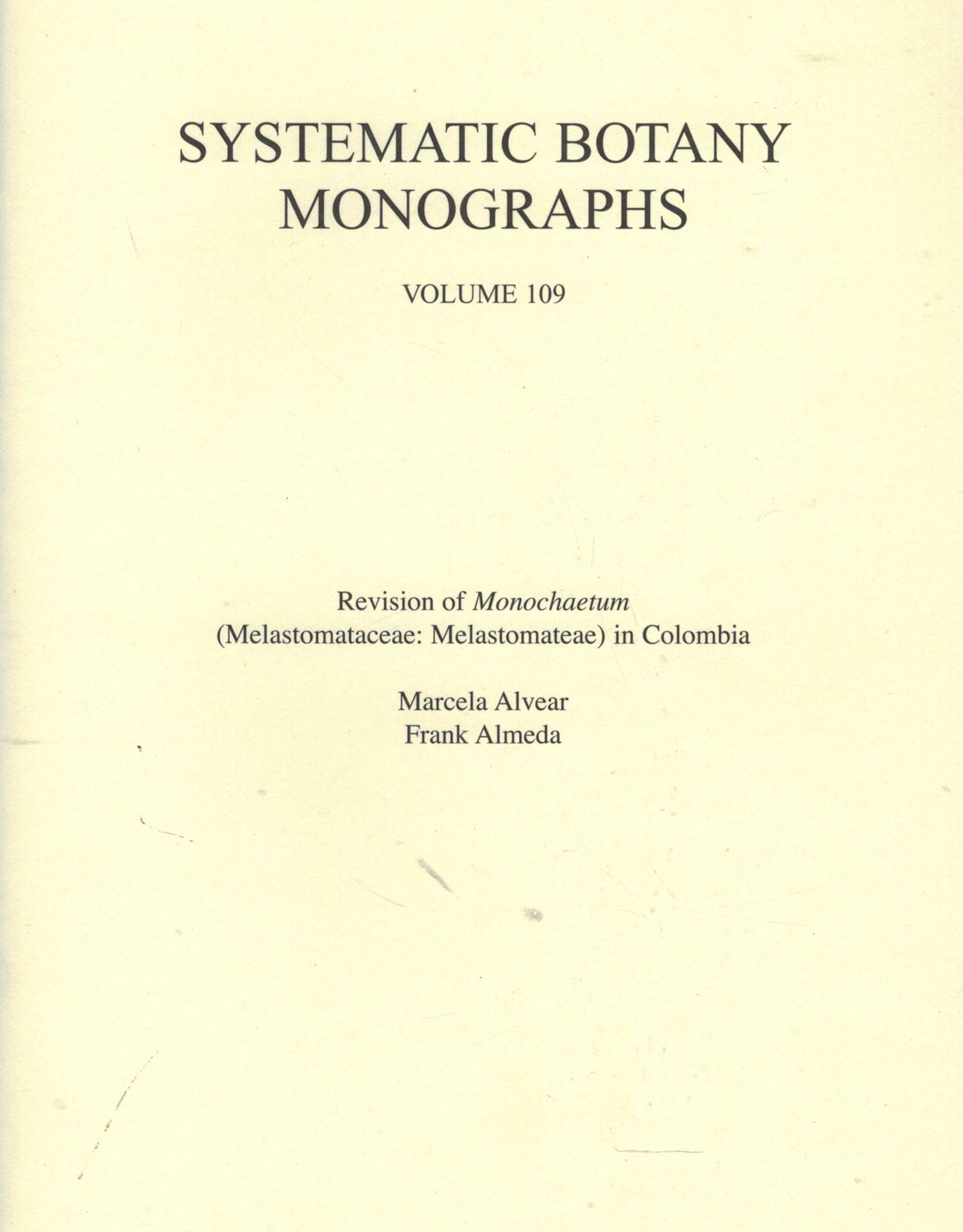 Revision of Monochaetum (Melastomataceae: Melastomateae) in Colombia. 2019. (Systematic Bot. Monographs, 109). 2 col. pls. 153 p. Paper bd.