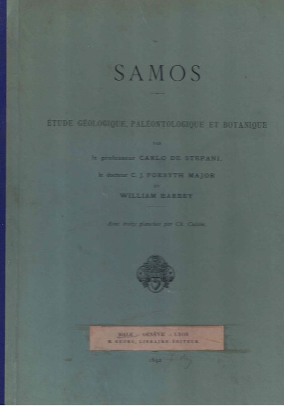 Samos. Etude Géologique, Paléontologique et Botanique. 1891. 14 planches. 99 p. Large 4to. Hardcover.