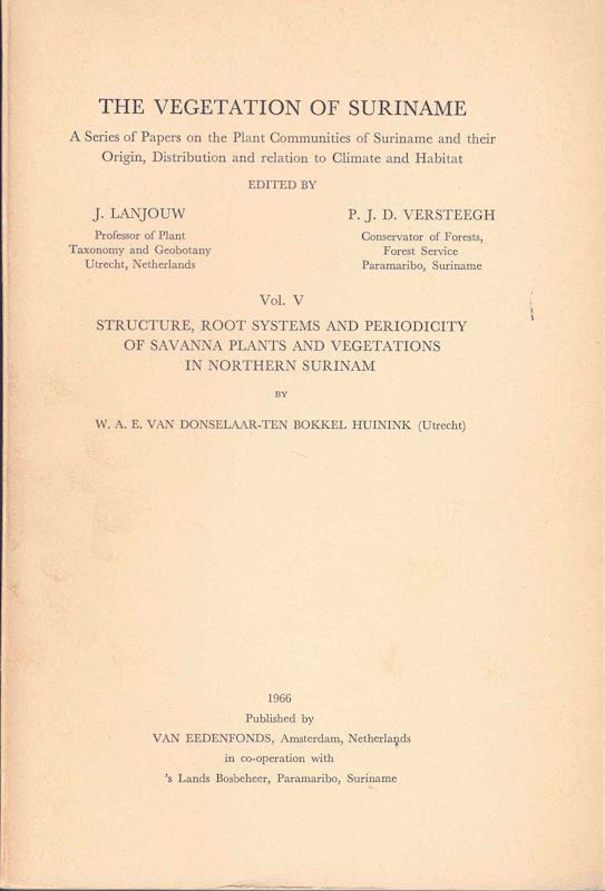 Structure, Root Systems and Periodicity of Savanna Plants and Vegetations in Northern Surinam. 1966. (The Vegetation of Suriname, 5). 162 p. gr8vo. Paper bd.