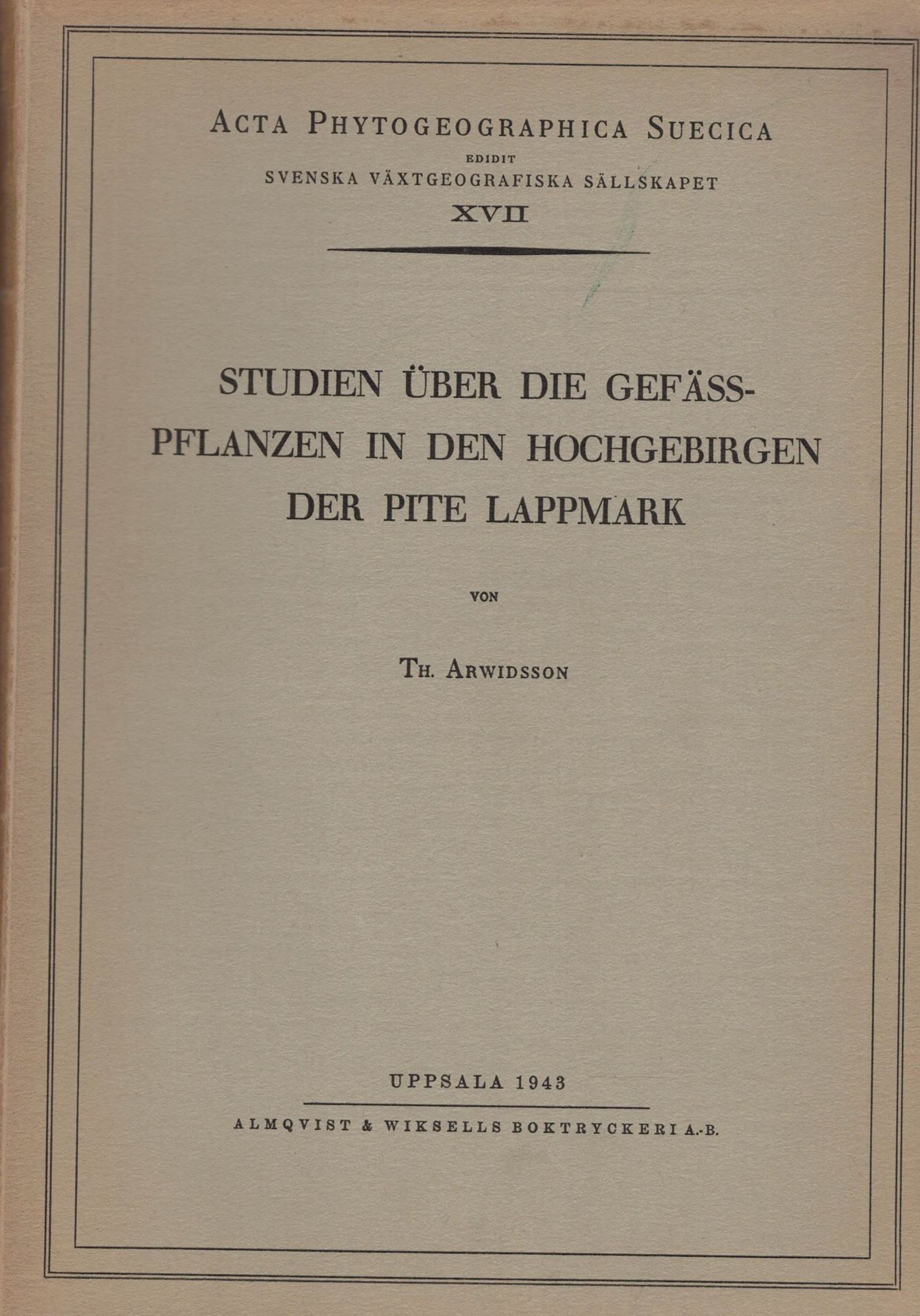 Arwidsson, T.: Studien über die Gefässpflanzen in den Hochgebirgen der Pite Lappmark. 1943. (Acta Phytogeographica Suecica XVII). 52 Fig. 274 S. gr8vo. Paper bd.(83608) 21.40