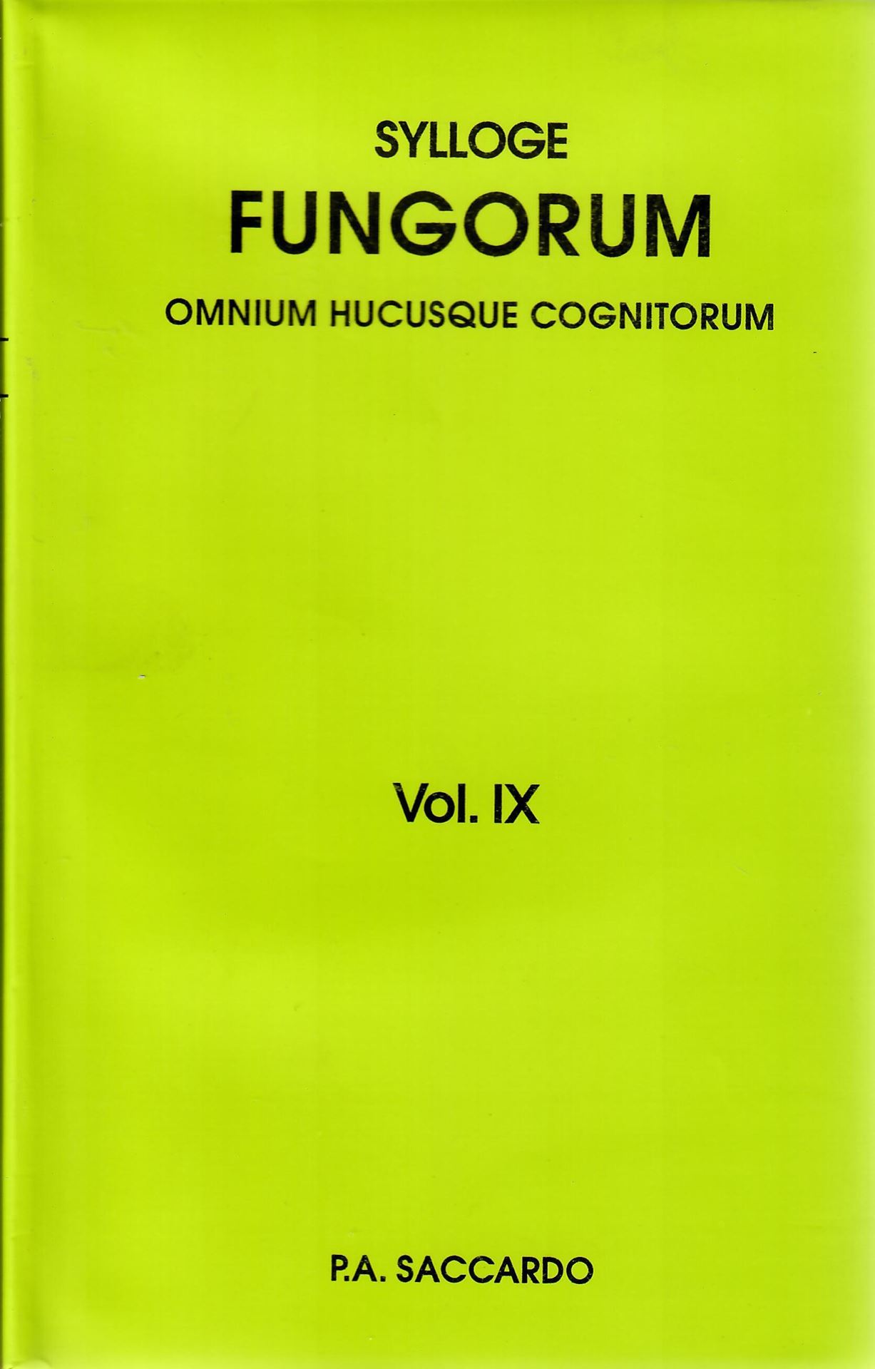 Sylloge Fungorum omnium hucusque cognitorum. Vol. 9: Supplementum universale. Pars 1: Agaricaceae-Laboulbeniaceae. (Patavii 1891). Reprint 2008. 1141 p. gr8vo. Hardcover.