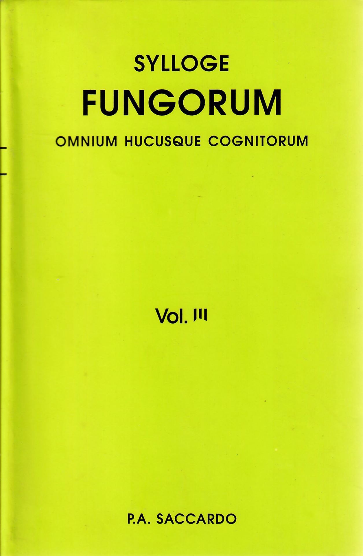 Sylloge Fungorum omnium hucusque congitorum. Vol. 3: Sphaeropsideae et Melanconieae. (Patavii 1884). Reprint 2008. 860 p. gr8vo. Hardcover.