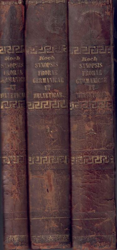 Koch, D. Wilh. Dan. Jos.: Synopsis der Deutschen und Schweizer Floraenthaltend die genauer bekannten phanerogamischen Gewächse, so wie diecryptogamischen Gefäss-Pflanzen welche in Deutschland, der Schweiz,in Preussen und Istrien wild wachsen... 2.Auflage. 3 Teile in 2 Bänden.1846. LXVIII, 1210 S. gr8vo. Halbleinen. (87191) 178.00