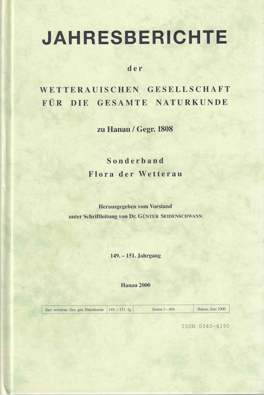 Taxonomie, Nomenklatur und Floristi: eine Auswertung des Gefäßpflanzenteils von Gärtner, G., B. Meyr ud J. Scherbius Oekonomisch - Technische Flora der Wetterau (1799-1802). 2000. (Jahresberichte der Wetterauischen Gesellschaft für die Gesamte Naturkunde zu Hanau, Sonderband, 149.-151. Jahrgang). 494 S. Hardcover.