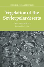 ALEKSANDROVA, Vera: Vegetation of the Soviet Polar Deserts. Translated by Doris Loeve. 1988. (Studies in Polar Research). 54 figs.(incl.some distr.maps). 22 tabs. XII,228 p. gr8vo. Hardcover. (25631) 73.83
