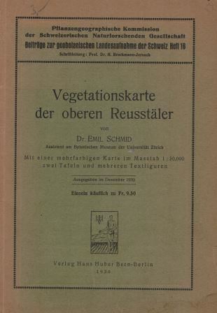 Schmid, Emil: Vegetationskarte der oberen Reusstäler. 1930. (Beitr. geobot. Landesaufn. d. Schweiz,16). 1 farbige Vegetationskarte (1:50.000). 2 Tafeln. 64 S. gr8vo. Broschiert. (90527) 24.61 (90527)