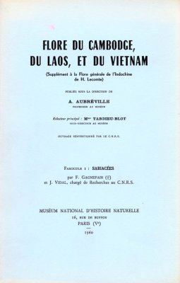 FLORE DU CAMBODGE, DU LAOS ET DU VIET-NAM: Vol. 1: Gagnepain, F. etJ.Vidal: Sabiacees. 1960. illus. 60 p. gr8vo. Paper bd.(4216) 16.00