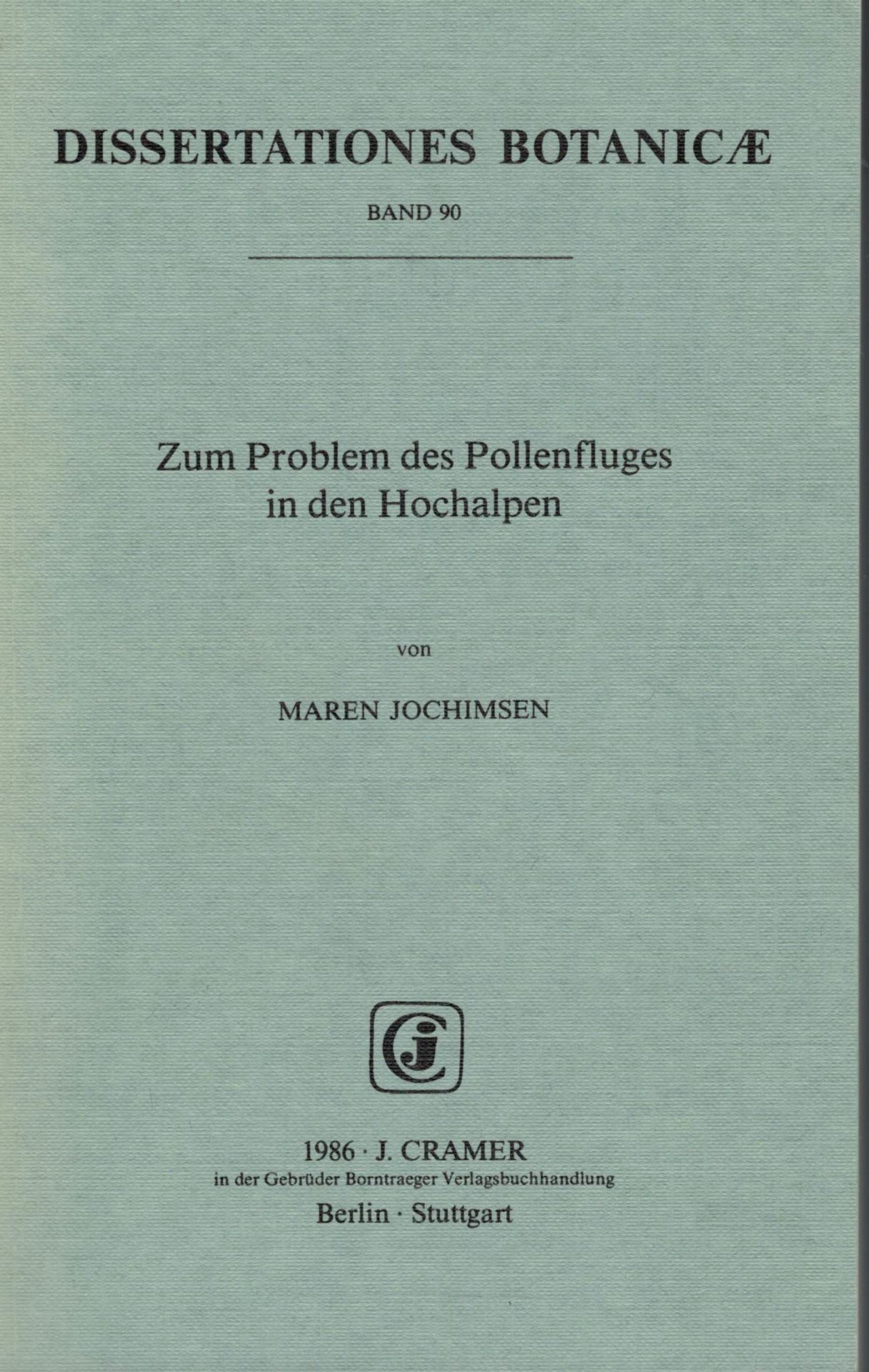 DISSERTATIONES BOTANICAE: Volume 090: Jochimsen,Maren: Zum Problem des Pollenfluges in den Hochalpen. 1986. mit einigen gefalt. Diagrammen. 16 Fig. 249 S. gr8vo. Broschiert. (20944) 47.00