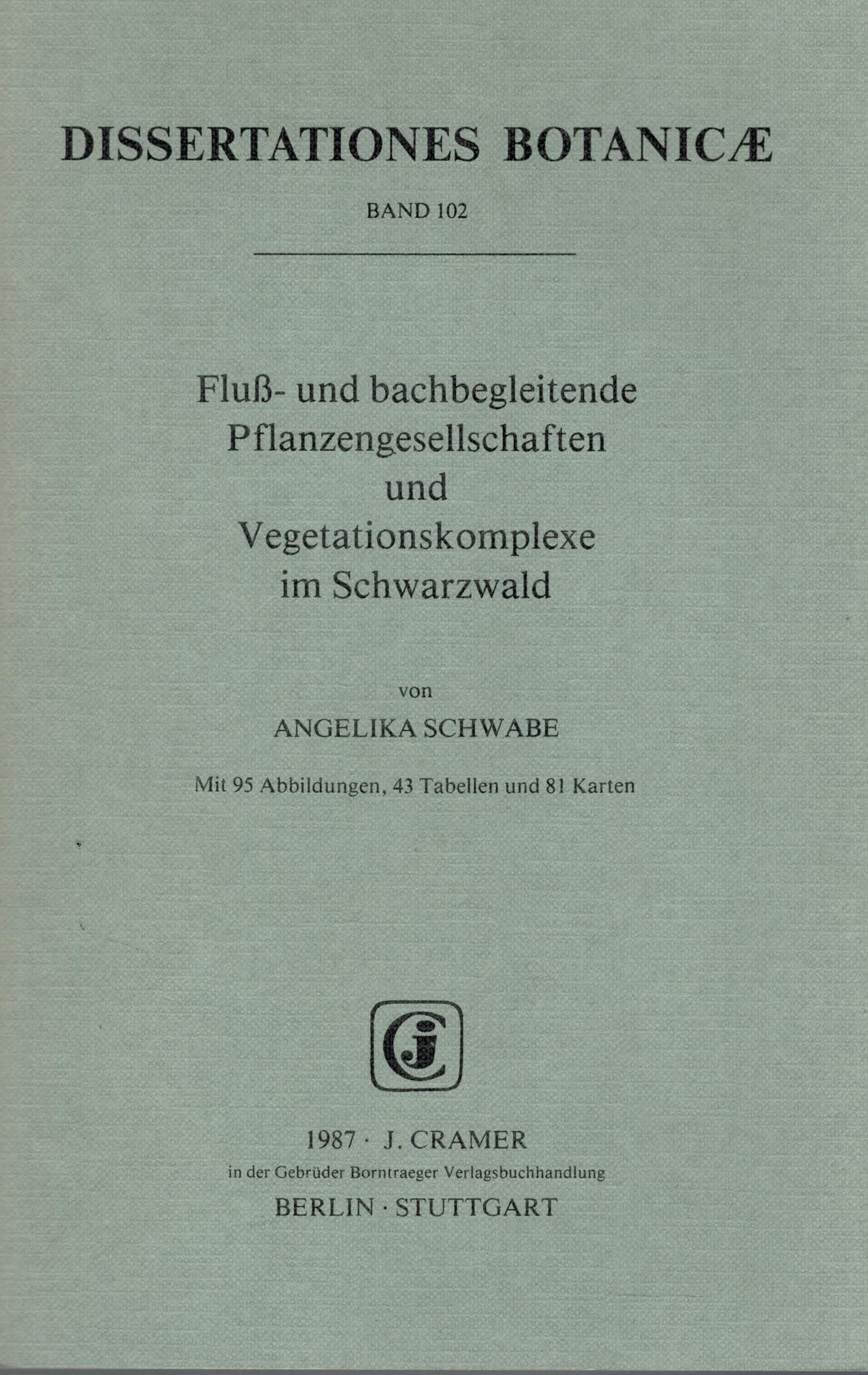 DISSERTATIONES BOTANICAE: Volume 102: Schwabe,Angelika: Fluss- und bach- begleitende Pflanzengesellschaften und Vegetationskomplexe im Schwarz- wald. 1987. 95 Abbildungen. 43 Tabellen. 81 Karten. VIII,369 S. gr8vo. Paper bd. (27725) 82.00