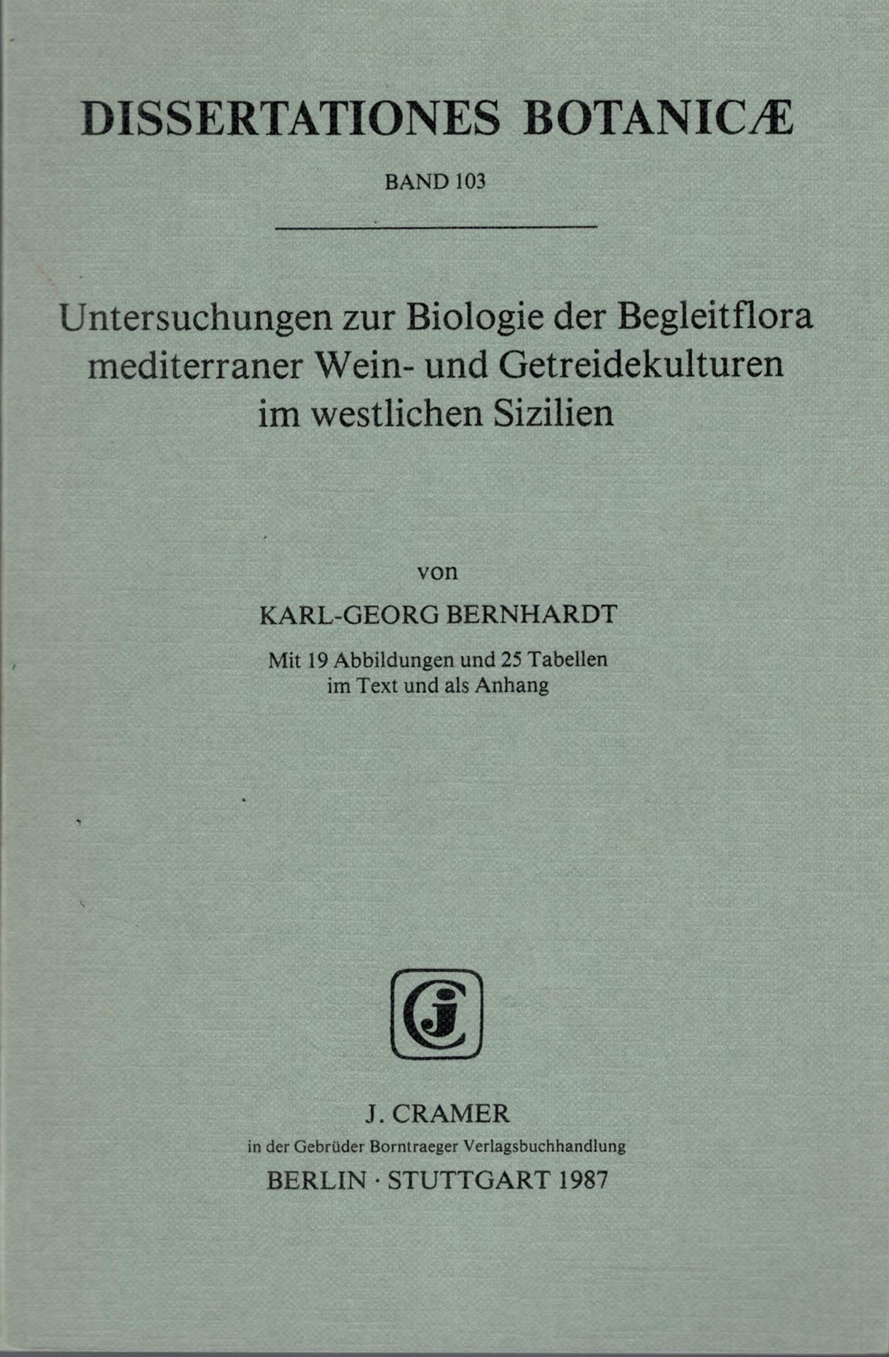 DISSERTATIONES BOTANICAE: Volume 103: Bernhardt,Karl-Georg: Untersuchun- gen zur Biologie der Begleitflora mediterraner Wein- und Getreidekultu- ren im westlichen Sizilien. 1987. 19 Abb. 25 Tab. IV,138 S. gr8vo. Paper bound. (27789) 31.00