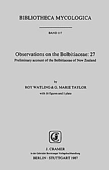 Volume 117:Watling,Roy and G.Marie Taylor:Obser- vations on the Bolbitiaceae: 27. Preliminary Account of the Bolbitia- ceae of New Zealand. 1987. 16 figs. 1 plate. IV,98 p. gr8vo. Paper bd.