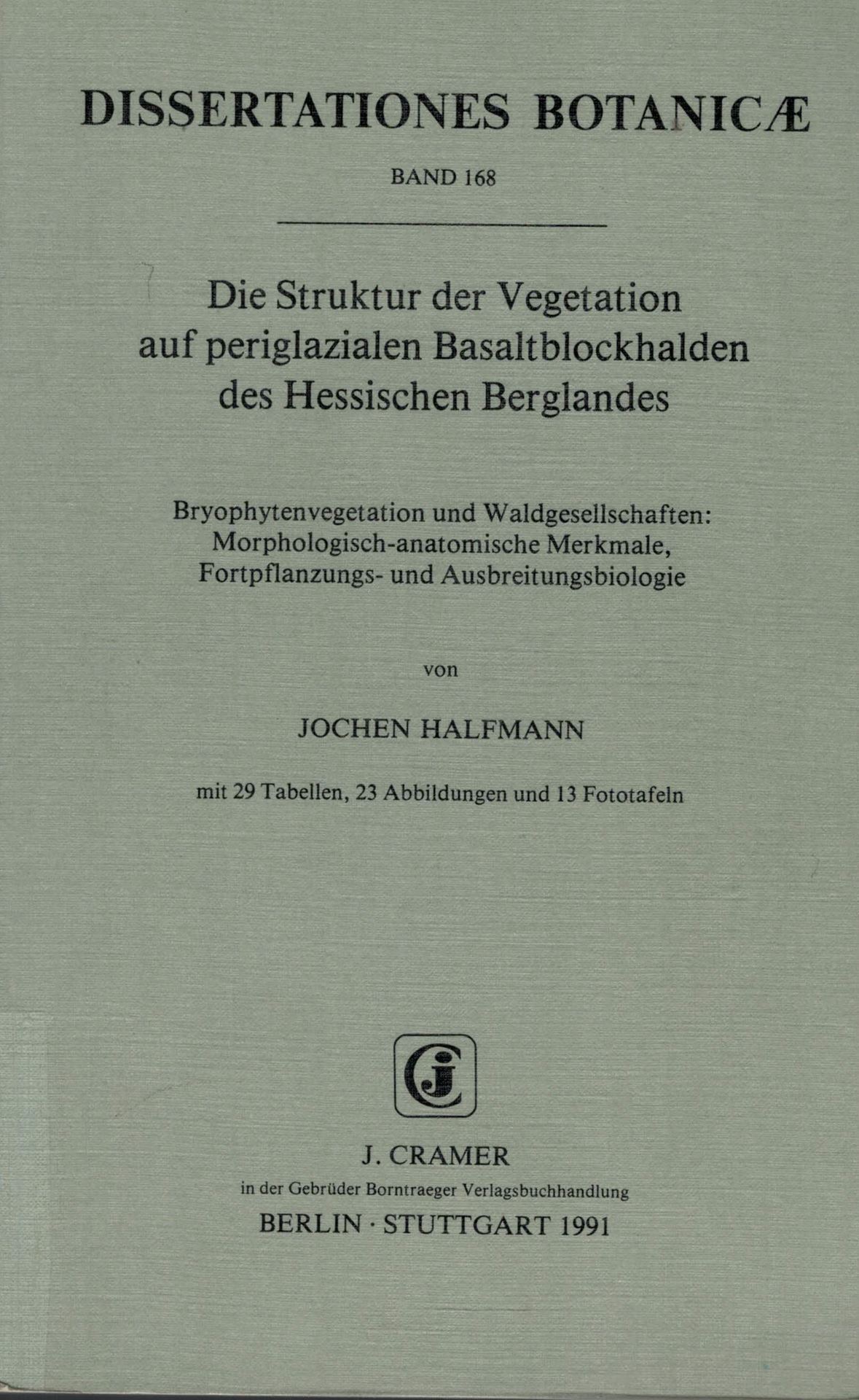 DISSERTATIONES BOTANICAE: Volume 168: Halfmann, Jochen: Die Struktur der Vegetation auf periglazialen Basaltblockhalden des Hessischen Berglan- des. Bryophytenvegetation und Waldgesellschaften: Morphologisch-anatomi- sche Merkmale, Fortpflanzungs- und Ausbreitungsbiologie. 1991. 29 Tab. 23 Abb. 13 Fototafeln. X,228 S. gr8vo. Paper bd. (43662) 62.00