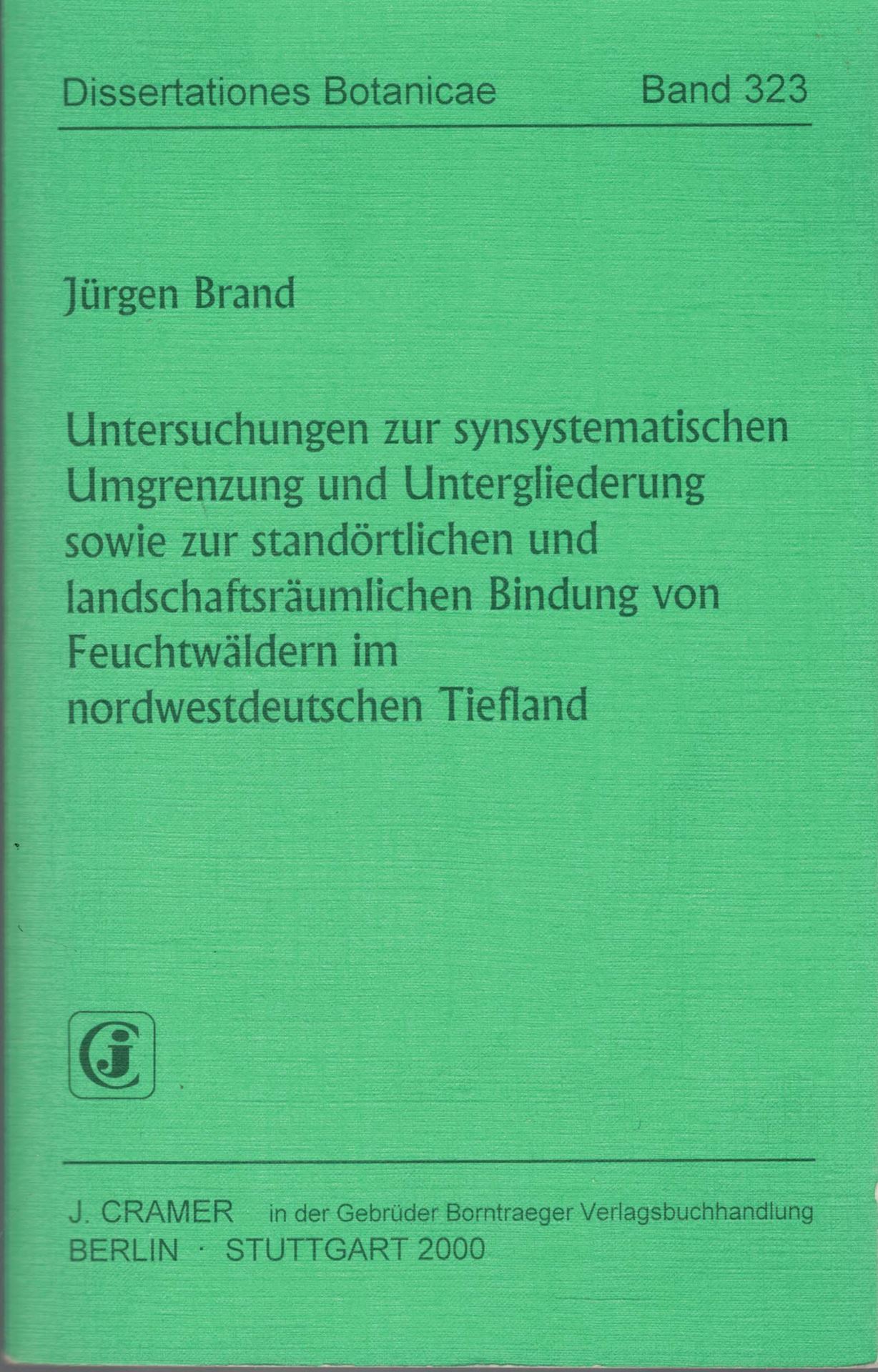 Dissertationes Botanicae: Volume 323: Brand, Jürgen: Untersuchungen zur synsystematischen Umgrenzung und Untergliederung sowie zur standört- lichen und landschaftsräumlichen Bindung von Feuchtwäldern im nordwest- deutschen Tiefland (A study of sysystematic delineation and classifi- cation of moist forests in Lower Saxony State: the relationship of occurrence and prevailing landscape type). 2000. 35 Tabellen. 52 Fig. 344 S. gr8vo. Broschiert. (77245) 72.00