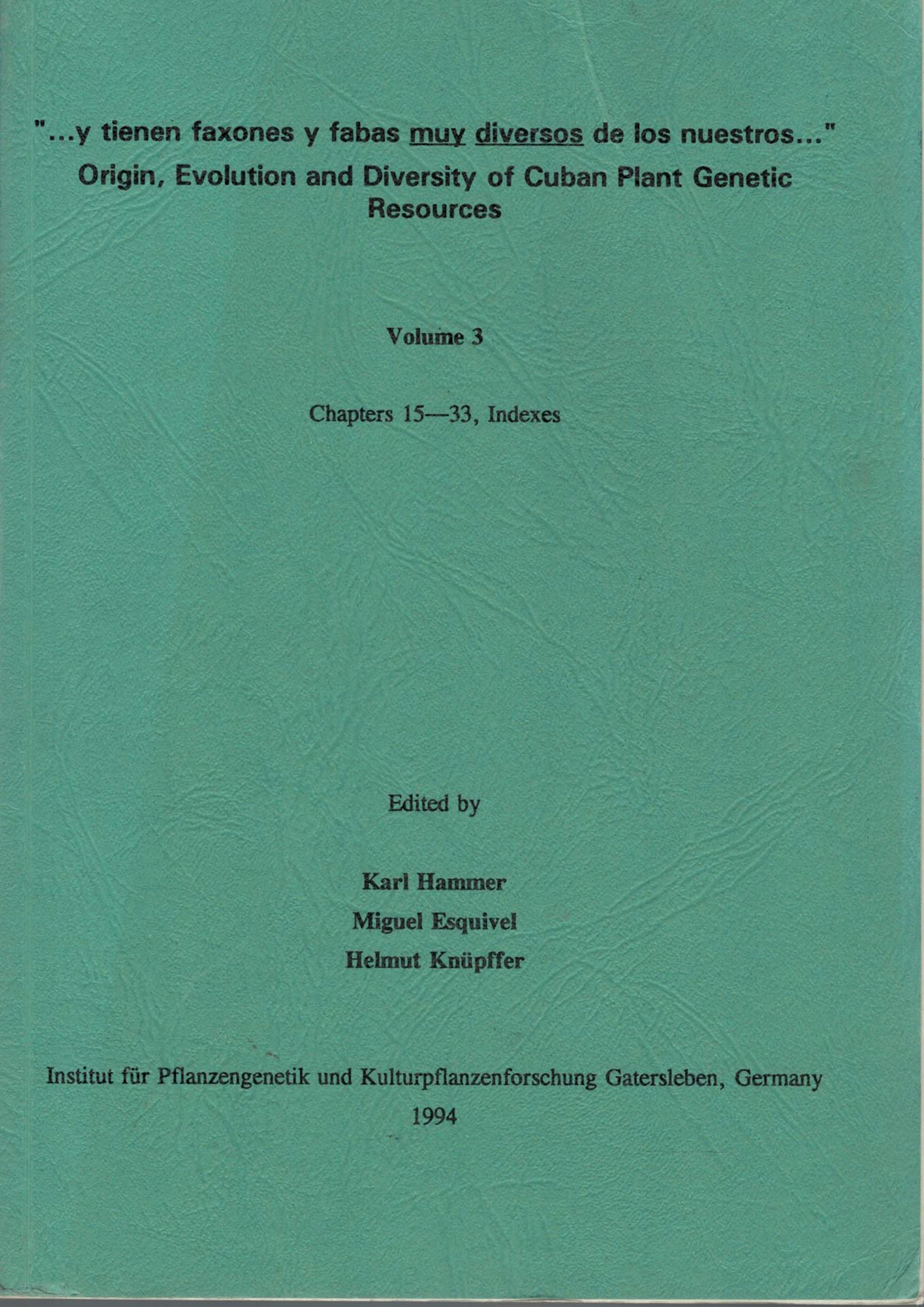 Hammer, Karl, Miguel Esquivel and Helmut Knuepffer (eds.): Y tienen faxones y fabas muy diversos de los nuestros...". Origin, Evolution and Diversity of Cuban Plant Genetic Resources. Volume 3 (Chaper 15-33, Indexes). figs. tabs. XVI,370 p. gr8vo. Paper bd. (57487) 36.00