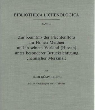 KUEMMERLING, Heidi: Zur Kenntnis der Flechtenflora am Hohen Meissner und in seinem Vorland (Hessen) unter besonderer Beruecksichtigung chemischer Merkmale. 1991. (Bibl.Lichenologica, Bd. 41). 35 Abb. 4 Tab. II,315 S. gr8vo. Paper bd. (44161) 38.00